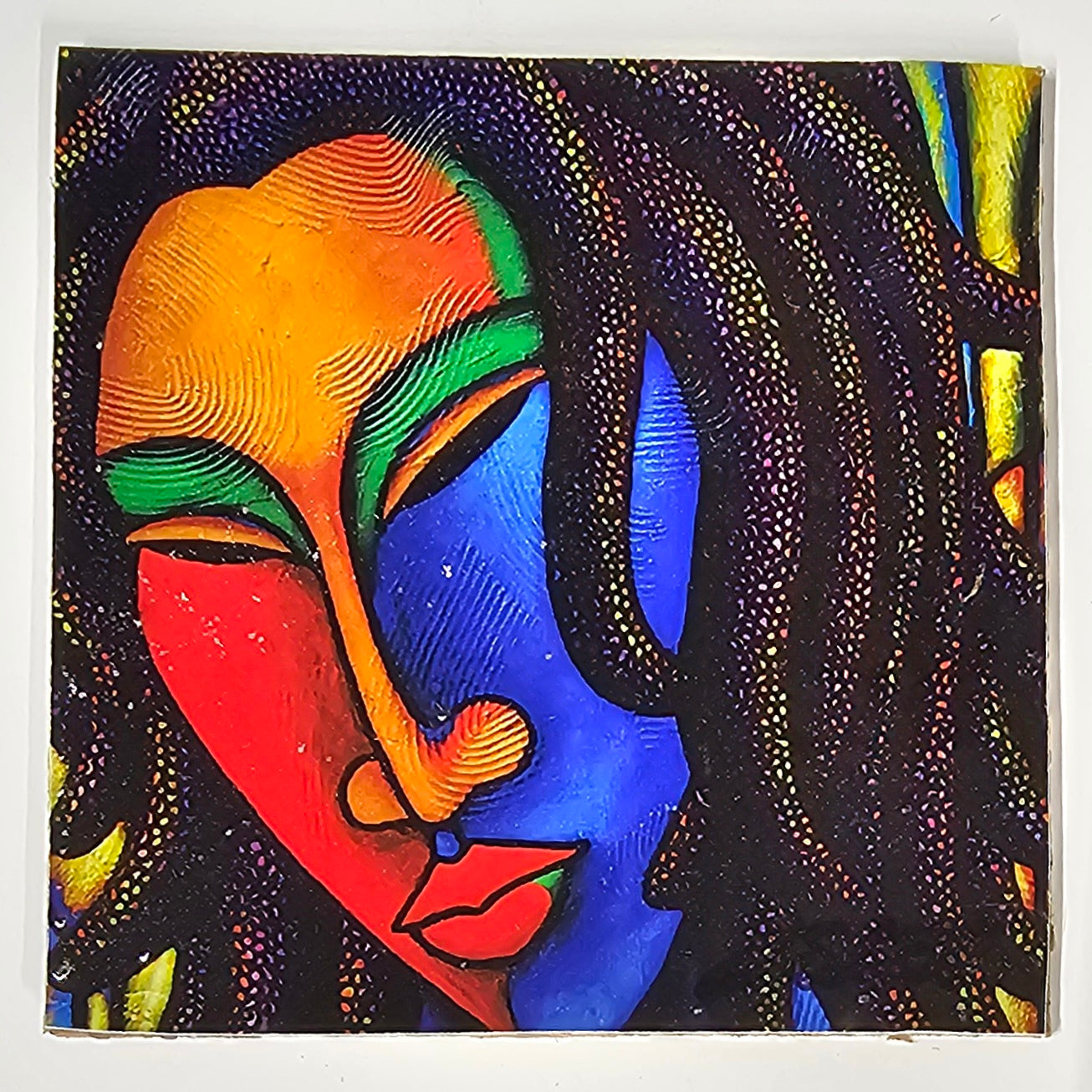 Each coaster features a different artistic image by LaShun Beal.