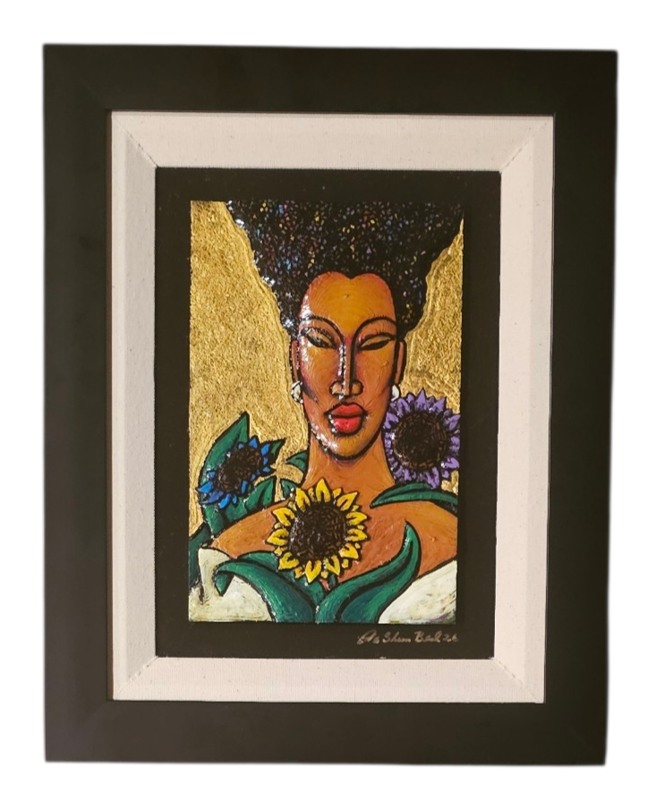 Medium: Acrylic Painting on Resin Relief Sculpture Framed in Black No Glass